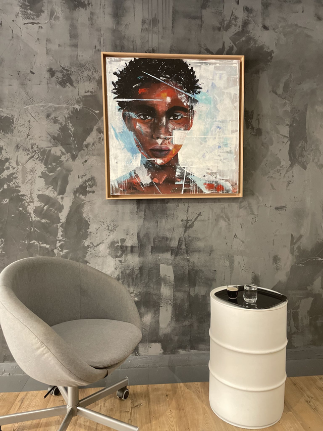 Dimensions : 80 x 80 x 3,8 cm - Acrylique, peinture à l’huile et spray sur toile - Cadre en supplément.
